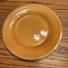 This is a set of three Pier 1 Imports Spice Route dinner plates. Each plate is made of stoneware and has a Paprika & Ginger color scheme. They are round in shape with a diameter of 10 7/8 inches. The plates are decorated with a beaded Spice Route pattern and are manufactured in China. The backstamp is printed on the plates. Please view all photos.