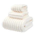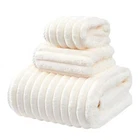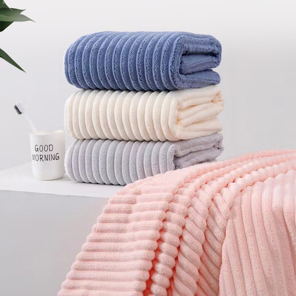 Set - 3-Piece Super Soft Candy Fleece Bath Towel Absorbent Square Towels Product name: Candy Fleece Towel 3-Piece Set Material: High-end Candy Fleece Weight: Approx. 16 oz (453g) 3 pcs Includes: 1x face towel (35 * 75cm) 1x dry hair cap (25 * 60cm) 1x bath towel (70 * 140cm) Premium Softness: Crafted from high-end candy fleece, offering an incredibly soft and skin-friendly touch, perfect for all family members, including those with sensitive skin. Superb Absorbency: Unique fiber structure ensures excellent water absorption, quickly drying your body and reducing the risk of catching a cold. Quick Drying: Designed to dry rapidly, keeping you comfortable and dry after every use. Stylish Design: Available in trendy colors like off-white, grey, blue, and pink, seamlessly blending into various home decor styles. Complete Set: Includes a face towel, hand towel, and bath towel, providing a versatile and stylish solution for your bathroom needs.