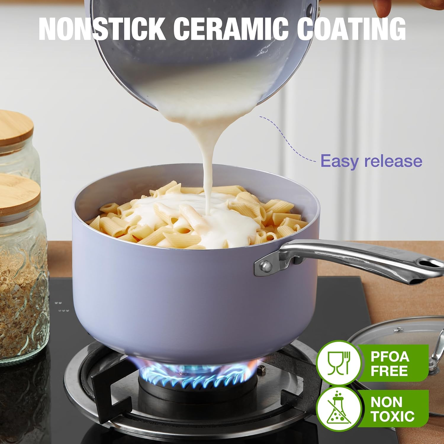 1.5 Quart Ceramic Nonstick Stainless Steel Saucepan with Lid