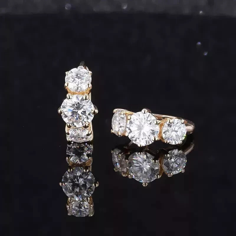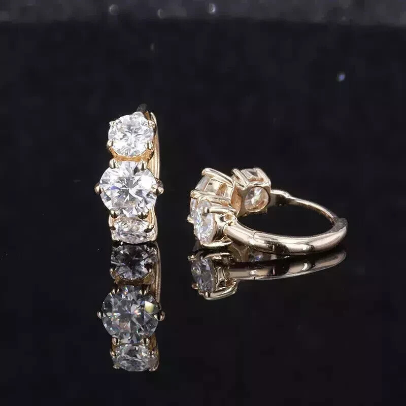 3ct Round Moissanite Stud Earrings in 14K Yellow Gold Plated