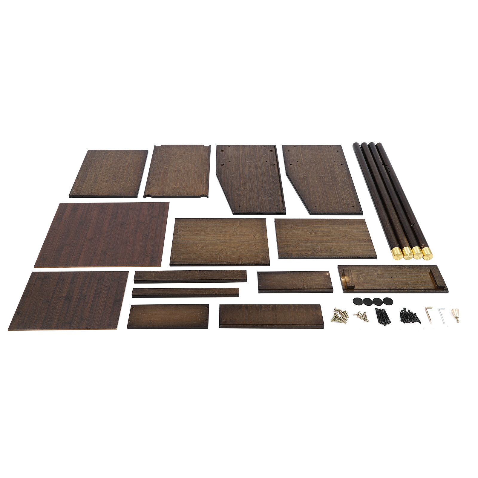 This bookshelf is a perfect blend of style and function! The sturdy bamboo and density board construction holds up to 60kg, while the sleek walnut finish adds a modern touch. The three spacious tiers and handy drawer keep everything organized, and assembly was a breeze with the clear instructions. Compact yet roomy, it fits perfectly in small spaces. A great buy for anyone needing extra storage with a chic look!