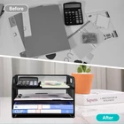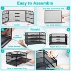 desk organizer help you organize your workspace efficiently, saving desktop space while keeping everything within easy reach. Its minimalist and modern mesh design blend seamlessly with any decor, adding a professional touch to your workspace while keeping it organized and tidy. Features: 1. Sturdy Construction Crafted from premium metal mesh, the paper organizer is built to last. Its reinforced frame and thickened support rods provide exceptional strength, ensuring it can hold a large volume of papers, folders, and books without warping or breaking. 2. 3 Tier Categorized Space With its 3-tiered design, the letter tray offers ample storage space for letters, A4 papers, magazines, and more. 3. Easy Mobility The metal desk organizer features a convenient handle design, making it easy to move and reposition wherever you need it. 5. Easy to install Simply open the frame of the paper tray, which is connected by hinges, screw in the top and bottom trays, then place the center sliding tray in place. Each paper holder comes with 160 paper clips, 4 non-slip pads, installation tools and an instruction manual. 6. Macaroon Color Paper Clips The paper tray set comes with a box of 160 paper clips in macaroon color. The paper clip is made of steel core material, not easy to rust and deform, and can clip 10 sheets of A4 paper. 7. Versatile Organizer Perfect for office, school, home use, the file folder organizer is ideal for storing documents, bills, books, and stationery. Its open-grid design allows for quick identification of contents, making it a practical solution for improving productivity Specifications: Material: Metal Color: Black Size: 12.8x9.25x6.9inch/ 32.5x23.5x17.5 cm Package Includes: 1 x Metal Paper Organizer 160 x Paper Clips 1 x Installation Tools Kit (Includes Instruction Manual) STURDY CONSTRUCTION: The paper organizer is made of high quality metal mesh for durability. Its reinforced frame and thickened support rods provide superior load-bearing capacity, ensuring it can hold a large volume of papers, folders, and books without warping or breaking. 3 TIER CATEGORIZED SPACE: With its 3-tiered design, the letter tray offers ample storage space for letters, A4 papers, magazines, and more. The desk organizer help you organize your workspace efficiently, saving desktop space while keeping everything within easy reach. MOVABLE AND MINIMALIST DESIGN: The paper sorter features a handle design, making it easy to move wherever you need it. Its minimalist and modern mesh design blend seamlessly with any decor, adding a professional touch to your workspace while keeping it organized and tidy. EASY TO INSTALL: Simply open the frame of the paper tray, which is connected by hinges, screw in the top and bottom trays, then place the center sliding tray in place. Each paper holder comes with 160 paper clips, 4 non-slip pads, installation tools and an instruction manual. VERSATILE USE: Perfect for office, school, home use, the file folder organizer is ideal for storing documents, bills, books, and stationery. Its open-grid design allows for quick identification of contents, making it a practical solution for improving productivity.