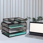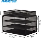 EASEPRES Paper Organizer Tray, 3 Tier Mesh Desk File Organizer Letter Sorter Holder with Drawer for Home Office, Black About this item Desktop Organizer - 3 Tier storage tray great for organizing A4 size paper, letter size folders, files, magazines, notebooks, top drawer organizer to storage stationery Stability Construction - Easy to assemble, made of sturdy black wire mesh construction, strong enough for holding office desk accessories, can last for a long time Declutter Your Desk - Keep files organized well and within reach, open design lets you identify the contents quickly, be more efficient with clutter free desktop Functional Desk Organizer - unique 3 + 1 shelf design, the drawer can be used separately, maximize desktop space, and will blend in with any decor, great for home or office Approximate Dimensions (in inches) - 12.9L X 9W X 9.6H in total.