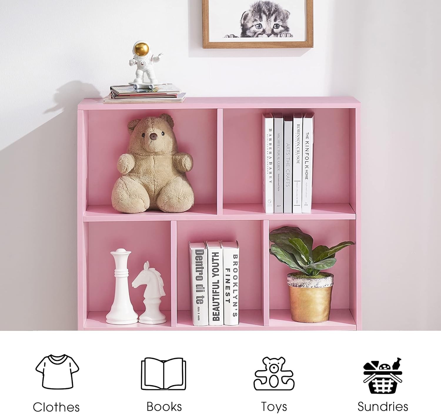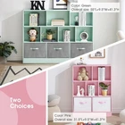 Product Description About this item Pink Bookshelf for Kids: Designed with a bright pink finish and crisscross partitions, the storage cube wooden bookcase can well match the decoration of your home. It can be used not only as a kid's bookcase, but also as a display cabinet, toy shelf, and universal storage cabinet that can be placed in kids' rooms, bedrooms, living rooms, and offices. Bookcase with Storage Space: This cube shelf with 7 open shelf compartments in 2 different sizes, to facilitate effective display and classification of various daily items, such as books, photos, and toys. The 2 foldable cloth drawers combine the open design with hidden storage. The top surface offers an additional place for displaying picture frames or home decor pieces. Wood Horizontal Bookshelf: The display cabinet comes with a safety anti-tip bracket that can fix it to the wall, preventing the kids from tipping over and causing injury. Our open bookshelf is compliant with CARB standards with formaldehyde emission below 0.21ppm. Therefore, this bookcase is suitable for families with children and pets and has no negative effect on health. Durable Bookcase with High-Quality Panel: Our 3-tier floor standing bookcase is made of premium MDF board, anti-scratch, deform-resistant, and very easy to clean for long-term use. And the sturdy wooden construction also makes the top able to bear up to 150 lbs and each cube 45 lbs. With non-slip adhesive pads, the storage cabinet ensures great support for stability without damaging the floor. Easy Assemble Small Bookshelf: The toddler bookshelf comes with detailed and illustrated instructions, including screws and the tool, a very simple structure, which you can assemble together with your kids, and enjoy a happy time. Storage Bookcase for Kids Supports the various stages of a child’s development If you are looking for a perfact storage cabinet to keep your stuffs clean and tidy, our bookcase is your best option. There are 7 cubes in total to store and display daily supplies in different sections, In addition, we also have 2 foldable fabric drawers, you can choose to place them on the first or third layer or just fold it to hide, which can meet your different storage needs. High Quality We use selected materials to produce our items, and each item has been tested many times through the production process to ensure that it is intact. Good Service We have a professional after-sales service team which proficient in 8 languages. Any questions? we will provide you with satisfactory solutions. Reliable Package An unlimited number of eligible furniture and oversized items can be delivered directly to your home for a single flat rate. Made for Children Living and Learning Kids’ Collection was carefully crafted with children in mind for encourages children to develop their own voices. Previous page A melamine veneer that is smooth and wear-resistant and long-lasting design for years of use Cloth drawers can hold some sundries, providing extra storage space Place them on the first or third layer or just fold it to hide, which can meet your different needs The thick back plate increases the stability of the open bookshelf Bookshelf for kids meet both aesthetic and functional storage requirements Next page Is this kids bookcase suitable for placing in the classroom? Yes! This kids bookshelf is perfectly designed for daycare, school, Montessori education classroom, kids room and so on. It is great for both parents and teachers. Can someone please tell me what the depth and width is of the shelves inside the unit? Hello, The size of the middle shelves are 13''(L) x 9''(W) x 12''(H) inches; The dimensions of the first and third shelves are 18''(L) x 9''(W) x 12''(H) inches Is this shelf easy to assemble? Yes! The small bookshelf comes with detailed and illustrated instruction to help you with installation. You can assembled together with children, enjoy the happy time. Color Pink+White Material MDF Board Overall Dimension 32"L x 9.5"W x 41"H Top and Bottom Grid Size 15''L x 9''W x 12''H Middle Storage Shelf Size 10''L x 9''W x 12''H Packing Quantity 1 Number of Shelves 7 Weight Capacity 200 Lbs(Overall), 45 Lbs(Each shelf) Net Weight/Gross Weight 50/55 LBS