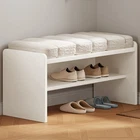 Guyii 3-Tier Shoe Storage Bench with Soft Cushion Ottoman Shoe Rack for for Entryway, Entry, Living Room, Hallway, Beige Soft & Comfortable Cushion: The top seat is covered with a soft, breathable fabric that feels like velvet to the touch. Filled with thick, resilient foam, it provides a plush and cozy seating experience while remaining durable and resistant to wear. The skin-friendly and breathable material ensures comfort even with long-term use Dual-Layer Shoe Storage Rack: Designed with a practical two-tier shoe rack, this bench maximizes your storage without taking up extra space. The open design keeps your shoes organized, visible, and well-ventilated, making it easy to access everyday footwear. Ideal for households with multiple pairs of shoes to manage. High-Quality Engineered Wood Frame: Built with premium engineered wood, the frame ensures long-lasting strength and stability. This bench is sturdy and wobble-free, capable of holding up to daily use without sagging or squeaking. Its smooth surface is resistant to scratches and easy to clean. Versatile Placement in Any Room: This multifunctional bench suits a variety of spaces, including your entryway, bedroom, living room, or even at the foot of your bed. Its neutral beige tone and minimalist design make it a perfect match for modern, farmhouse, or classic décor styles. Easy Assembly & Exceptional Service: Comes with clear instructions and all necessary hardware for a hassle-free setup. Most customers complete assembly in under 15 minutes. Plus, we offer top-notch customer support—if you encounter any problems, we’ll respond promptly and resolve the issue 100% to your satisfaction. Packing Includes: 1 x Shoe Bench 1 x Assemble Instruction 1 x Accessories required for assembly