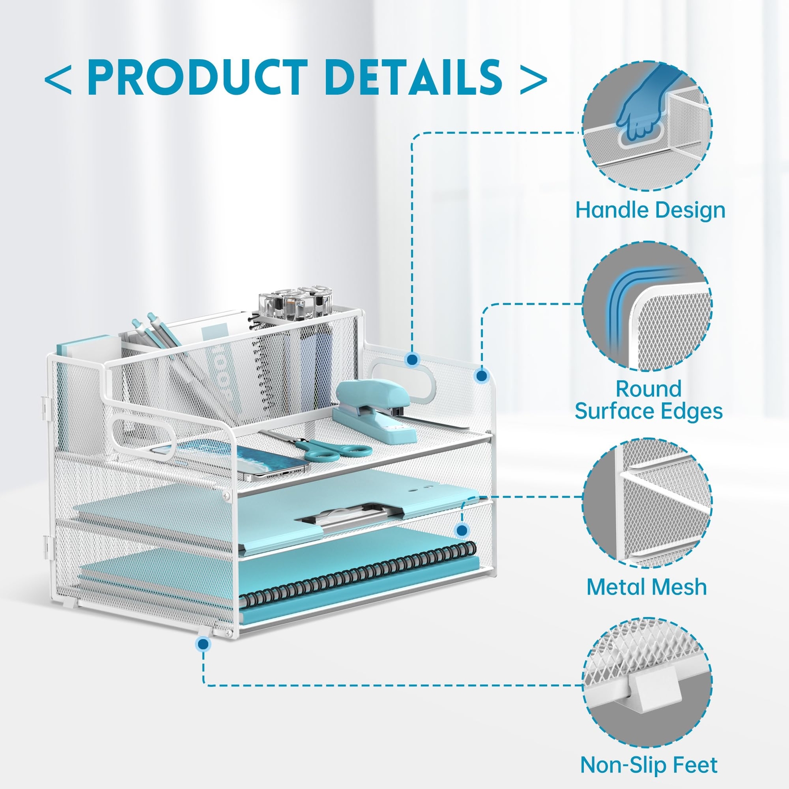 β¨ 3-Tier Paper Letter Tray Organizer with Pen Holder, Mesh Desk Accessories & Workspace Organizers with Handle, File Sorter Office Supplies for Desk, White β¨ π Product Overview "" desk organizers are multifunctional. This paper organizer provides 3 trays for organizing papers, letters, folders, files, books, mails, documents, etc. The pen holders on the top help organize your various pens, small notebooks, scissors and stapler. Our file organizer gives you large capacity for desk organization, keeping your office clean and tidy. π₯ Key Features MULTIFUNCTION DESK ORGANIZER - newly releases this file organizer with sliding trays and 3 pen holders which tidies up your desktop and is convenient to your office. Our paper organizer are not only beautiful but also powerful, suitable for a variety of applications in the office, home, school and more. Your ultimate choice for office organization. HIGH QUALITY MATERIAL - Our desk organizer is made of solid metal mesh, soldering is very strong, and equipped with professional painting technology, the surface is smooth and delicatevery sturdy, together with rubber non-slip pads to prevent sliding, avoid surface scratches. It is a sturdy office decor. EASY TO ASSEMBLE - Each installation procedure for this paper organizer is clear and simple. Screwdriver is also included. It will only take you few minutes to assemble our desk organizers and accessories. The compartment of the pen holder is designed with inserts, and the storage space can be designed at will. SAVE SPACE - This paper letter tray organizer with pen holder can help you use your workspace more efficiently. With our desktop organizer, you can have a more organized desk with everything in its place for a more comfortable workspace, it's also a perfect desk accessories. PATENTED STYLISH DESIGN - Our desktop organizer seamlessly combines pen holder and paper tray, eliminating the worry of losing your hanging pen holder. This file holder not only meets all your desktop organization needs, but is also the perfect gift for your child. (USPTO Patent Application No. 27831572) π¦ Shipping Information We ship to the address provided on eBay. Please ensure your address is correct before ordering. Orders will be processed within 1-2 business days. Typical delivery time is 3-7 business days, depending on your location. If you encounter any issues, please reach out to us immediately. π Return Policy Returns are accepted within 30 days of receipt. Please ensure the item is returned in its original packaging and condition. π³ Payment Methods We accept PayPal and all major credit cards for your convenience. π Contact Us If you have any questions, feel free to message us through eBay for prompt support.