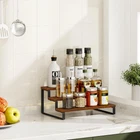 3-Tier Vintage Spice Rack is a great solution for your mess kitchen countertop.Specifications: Color: Rustic BrownMaterial: Particle Board & Metal Product Size: 13.8”L x 9.5”W x 6”H Product Weight: 2.97lb Sturdy & Waterproof: The environmental protection paint surface adopts safe painting and exquisite technology, which makes the surface more smooth, durable, tasteless and waterproof. Sufficient Capacity: 13.8”L x 9.5”W x 6”H. More storage space than ordinary spice racks, you can put anything you want within reach while you enjoy cooking. Classified Display: I display different kinds of seasonings on it so that I can quickly find the one I want in cooking. You know, some delicacies have a very tight rhythm during the production process, so I think you also need one. Adjustable Feet Pad: Designed to ensure the stability of the spice rack, perfect for easy leveling on uneven countortop. Easy to Assemble: Our shelves are very easy to assemble. We are equipped with enough accessories and clear enough instructions,I feel you can finish it in 10 minutes. Package Contents: Spice Rack x 1 Accessory Bag x 1 L shaped allen wrench x 2 Instructions x 1 Notice: In order to make the shelf more stable, remember to tighten the screws. Wipe the rack shelf with wet duster for cleaning at the first. Vintage Appearance: Spice rack organizer for cabinet have rustic and aesthetic wood grain that fits perfectly with the black matt paint. Simple and elegant dark brown, adding a vintage rustic feel to your home. This rack is suitable for many places in your home. Sturdy Construction: The seasoning organizer made of high quality heavy-duty particleboard and supported with iron legs. Thickened iron frame (Thickness of 1 inch) to ensure sturdiness and has a stronger bearing capacity. The high-quality particleboard provides a flat & smooth surface can efficiently resist the corruption from water and easy to be cleaned. Convenient Design: The size of this spice organizer: 13.8”L x 9.5”W x 6”H. The stepped design allows your spice bottles, jars, coffee syrup bottles, condiments and spices to be clearly classified and fully displayed, you can find them quickly when you need them while cooking, avoiding panic. Multifunctional Usage: The desktop shelf can be used to store condiments, coffee syrup bottles, spices, cans and kitchen supplies in the kitchen ; It can be used for books and decorations in the study; It can be used to store bath towels, lotions, cosmetics, moisturizers, nail polish, soap and shampoo in the bathroom. No exaggeration, it can be applied to any corner of the house. Quick Setup & Easy Cleaning: With detailed instructions and tools provided, you can have this 3-tier spice rack assembled in 10 minutes. The wooden surface is waterproof and dust free, a damp cloth could keep the spice rack clean.