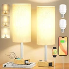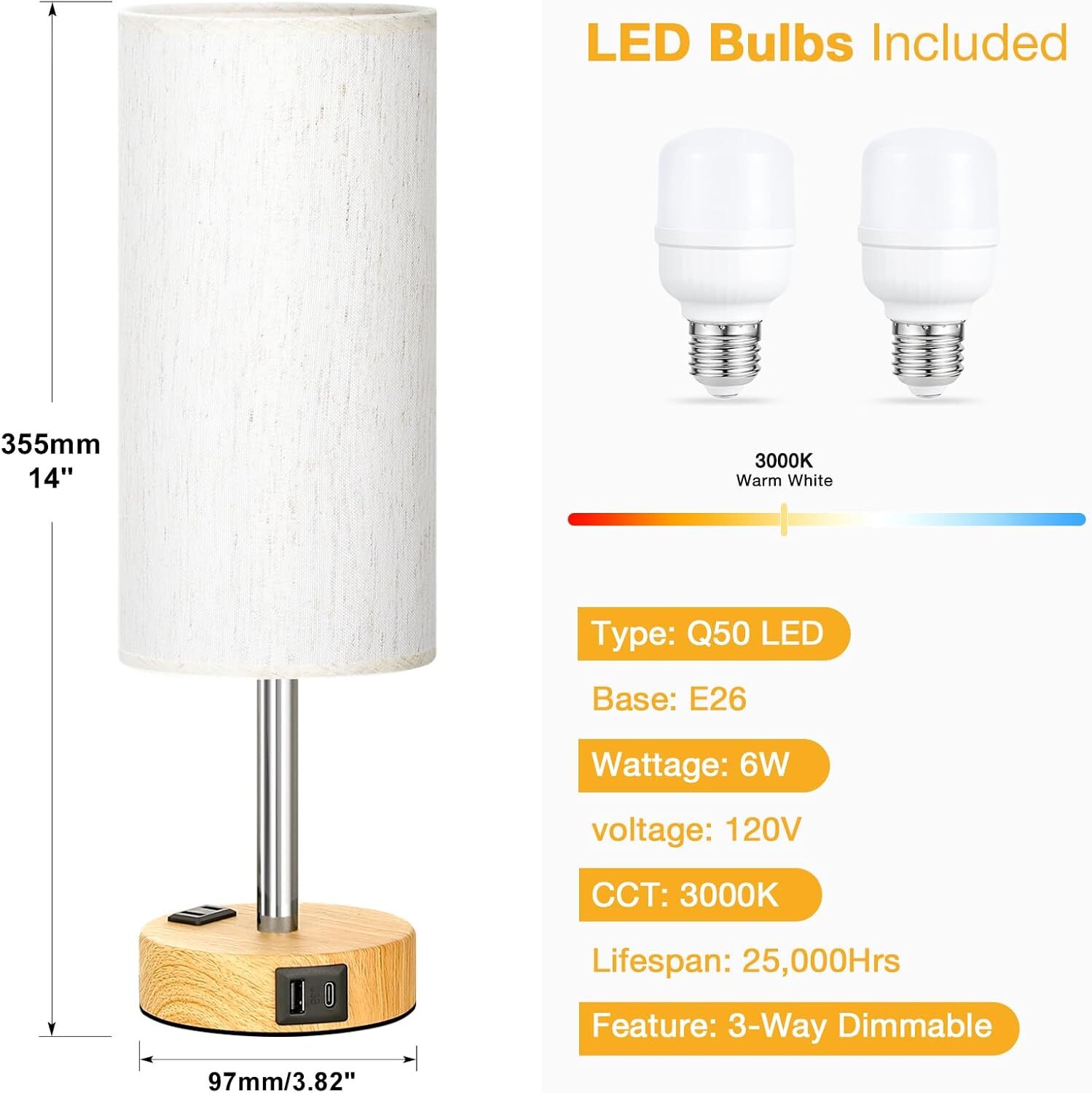 Product Description Touch Bedside Table Lamps Set - 3 Way Dimmable Bedroom Lamps Set of 2 with ... Touch Bedside Table Lamps Set - 3 Way Dimmable Bedroom Lamps Set of 2 with USB C and A Ports, Small Lamps for Nightstand with AC Outlet, Wood Base Round Flaxen Shade for Desk, Office, Dorm, Nursery 1. Touch Control Bedside Lamps - The smooth dimmable table lamps set of 2 feature with touch-sensitive sensor, to make quick changes to 3 different level brightness (Low, Medium, High), and soften the atmosphere quickly for you. Simply a touch or a pat on the nightstand lamp's base or pole when you want the night stand lamps On/Off, brighter/dimmer. (Used as a night lamp at low brightness, medium/high is enough to meet your needs for reading/working.) 2. USB-A & USB-C Charging Ports and Outlet - Power 6 devices at once bed side lamps set! With 2 usb-c ports (5V/2.1A) and 2 usb-a ports (5V/2.1A) and 2 outlets (120v) on the nightstand lamps set of 2, getting your phones, pad, laptops, humidifier, kindle, headsets, speaker, earbuds and other electronics fully charged all from the usb lamps for bedrooms set of 2 no matter if the touch lamp is on or off. 3. 6W LED Bulbs Included - For saving you more time on finding a correct bulb, we particularly pair with 2 non-flicker E26 LED light bulbs (worth $18). Unlike other dazzling side table light lamp, our modern small touch lamp provides no-flickering lights, to protect you and your kids and family's eyes from eye strain, or eyesight damages. 4. Plug and Play End Table Lamp - Package included 2 E26 led light bulbs, 2 install-free flaxen fabric shades, 2 stable lamp bodys and 2 touch control metal bases with wooden finishing. Put all together for the side table lamp is really perfect to decorate anywhere of your house. The ideal lamps with usb ports and outlets for bedroom, guest room, living room, study room, kids room for girls and boys, office room, desk, etc. at the same time. 5. All electronic components are UL listed for access to the US market. We can sincerely promise you 100% safety of our rustic table top lamp. You are welcome to contact us at any time with any request, our service team will help you in the whole shopping process, wish you a happy shopping! Contact Us We reply any email messages within 1 business / working days(off-duty at weekend). If you do not get a response from us, then please check your junk or spam mailbox. Our Business hours: Mon-Fri 9:00-18:00, UTC/GMT +8 hour s . Please contact us either by clicking "contact seller" in the "purchase history" section or simply click "ask a question" at the bottom of this page. If you are unsatisfied with our item or service, please contact us before leaving any feedback. We are committed to resolve all issues in a friendly and satisfactory manner. To provide you with better service, please provide the following information in your email: Your ebay ID Order problem, order number For product questions, the eBay article number, the product URL or the product SKU Unfortunately, the eBay guidelines do not allow us to provide a phone number. But if you'd rather call please send us an email. powered by