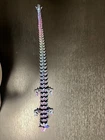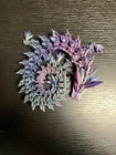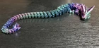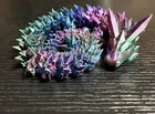 This 3D printed articulated crystal Dragon is a special edition luxury action figure standing at 24 inches in height. The large blue, purple, and green dragon is inspired by the TV show "Game of Thrones" and the movie "How to Train Your Dragon." It is a collector's edition from the DragonCon convention, manufactured in 2024 with a vintage design. The figure is fully jointed and made of plastic and crystal materials, featuring a 1:8 scale model of a Tyrannosaurus Rex. Additionally, it includes unique features such as being personalized and comes with exclusive packaging.