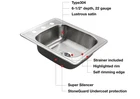 Colador de barra de 3 orificios de acero inoxidable con montaje superior, NEW US DURADERO: Este fregadero está fabricado con acero inoxidable T-304 de primera calidad y calibre 22, lo que garantiza su resistencia al agua, los alimentos y los productos químicos. ACCESORIOS INCLUIDOS: Colador de cesta (190-9180). COMPATIBILIDAD CON MUEBLES: Diseñado por expertos para integrarse fácilmente en un armario de 53 cm, lo que garantiza un ajuste perfecto a la distribución de su cocina o bar. FÁCIL DE INSTALAR: Incluye tornillos e instrucciones para una fácil instalación. REDUCCIÓN DE RUIDO: La almohadilla Super-Silencer minimiza el ruido en la zona del bar. DISEÑO ELEGANTE: Con un acabado satinado brillante y un borde resaltado, añade un toque de elegancia a su bar. CONVENIENCIA: Cuenta con una abertura de drenaje de 8,9 cm, lo que garantiza un drenaje eficiente del agua para su fregadero.