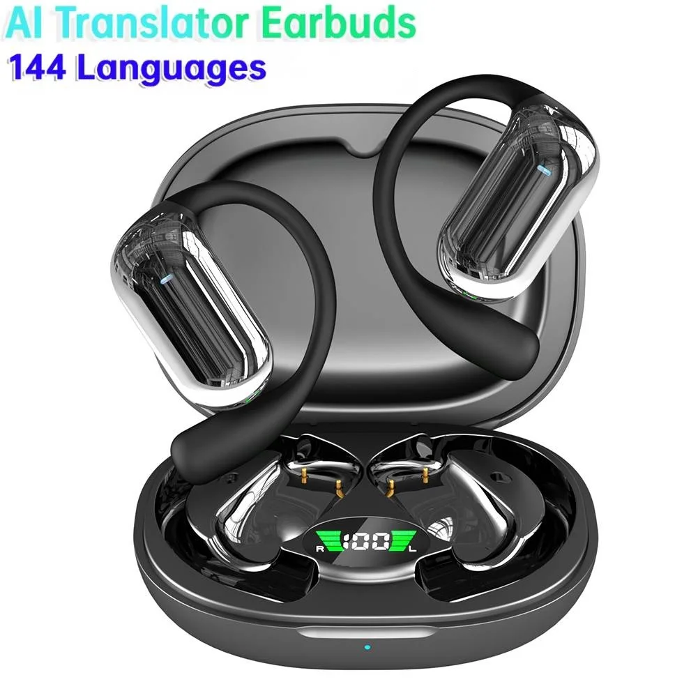 Bluetooth-Compatible 5.3 Translator Headphones Long-Lasting Open Ear Headphones Wireless Earbuds for Travel and Business Features: 1.Multifunctional AI Translation Earbuds: Utilizing advanced AI translation technology, these wireless earbuds combine translation, music playback, and calling functionalities. With support for 144 languages, they are perfect for one-on-one conversations in business meetings, trips, and educational settings. 2.Extended Battery Life & Quick Charging: Enjoy up to 8 hours of continuous use with the charging case providing 60 hours in total. The open ear headphones offer a 10-meter communication range, ideal for prolonged usage and ensuring seamless translation anywhere. 3.Latest Bluetooth-compatible 5.4 & HIFI Sound: Equipped with the newest bluetooth-compatible 5.3 chip, these translator headphones feature smart signal switching and anti-interference for fast transmission and low power consumption. HIFI sound and AI-enhanced bass offer immersive audio for calls and music. 4.ENC Noise Cancellation & Ergonomic Design: With ENC noise cancellation, ensure clear translations even in noisy environments. The BT headset features IP54 water and dust resistance and a 20° ergonomic angle for comfortable, fatigue-free use during extended wear. 5.Versatile Modes: AI translation earbuds' silent mode displays translation text without sound; Headphone mode listens to translation; Speaker mode records and plays translation on phone; Dual ear mode allows two users to communicate with Translators very smoothly. Specification: Origin: Mainland China Material: ABS+PC Bluetooth-compatible version: v5.3 Chip: Bluesound 5656C2" Supported protocols: A2DP1.3/HFP1.6/HSP1.2/AVRCP1.6/D11.3 Use/play time: 5 hours Standby time: 100 hours Charging time: 1.5 hours Distance: 10m Headphone battery: 45mAh Charging compartment: 400mAh Applicable: translation headphones, playback devices with Bluetooth-compatible function Product size:50.00x41.00x27.00mm/1.96x1.61x1.06inch Note: Due to different monitor settings and lighting conditions, the actual color of the item may vary slightly from the pictures. Thanks for your understanding! Please allow a 1-2 cm difference in measurements due to manual measuring. 1 x Earphones (One Pair) 1 x Charging Case 1 x Charging Cable