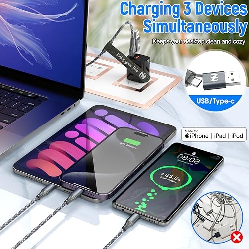 Return Policy Fast Delivery Trusted seller Multi Charging Cable (4ft 3Pack) 3 in 1 Charging Cable Nylon Braided Cord USB A/C Port Multiple iPhone Charger Cable with Type C Micro Lightning USB for Apple iPhone Android Phone Product Description 6-in-1 Multi Charging Cable,MFi-certified iPhone charging cable with aluminum tips and military-grade nylon braid. Seamlessly charge iPhone/iPad via lightning cables, power USB-C phones with C chargers fast charging, and revive micro USB devices like Kindles. Pure 3A fast charging without data transfer clutter. Tangle-free design perfect for cars desks travel 3-in-1 Multi Charger cable,Triple-device charging cables for multiple devices: iPhone lightning cable charging cords for iPhone, universal C-type charger cord, and rugged micro USB charging cable. Reinforced nylon survives 30,000+ bends. Sync iPhone/Android or charge tablets headphones simultaneously. Compact travel-ready design fits gym bags Durable Multi Phone Charger,4ft charging cord wrapped in bulletproof nylon charges iPhones via iphone cords, USB-C devices with phone charger cord, and micro USB gear using usb to micro usb cable. 3A fast charging protects battery health. Aluminum tips resist corrosion. Compatible with car chargers wall adapters power banks Universal Charging Station,MFi certified hub combines lightning cables, C charger cords, and microusb usb cables. Charge 3 devices including phone charger usb c phones and micro usb charger accessories. Military-grade nylon wrap withstands pets/kids. Includes travel pouch for desk car organization Tangle-Free Multi Charger Cord,3 in 1 charger for iPhone/Android: lightning cables, C charger cord, and micro usb. Slim aluminum connectors fit tight spaces. 3A fast charging for phones/tablets. No-fray nylon design. Backed by 24/7 support Shipping Returns Payment Shipping Shipping is FREE to all addresses other than APO/PO boxes in the lower 48 states. All our stock ships from US-based warehouses. Shipped via USPS or UPS (depending on location and package weight) Unless stated otherwise, all orders will ship within 24-72 hours of your payment being processed. Check our feedback to see the great reviews of FAST shipping we offer. Returns Seller does not accept returns Payment We currently accept payment via eBay managed payments only. Once payment is cleared, we will dispatch your shipment within 1-3 business days. Please refer to the "Shipping" tab for more information regarding shipping speed to your destination.