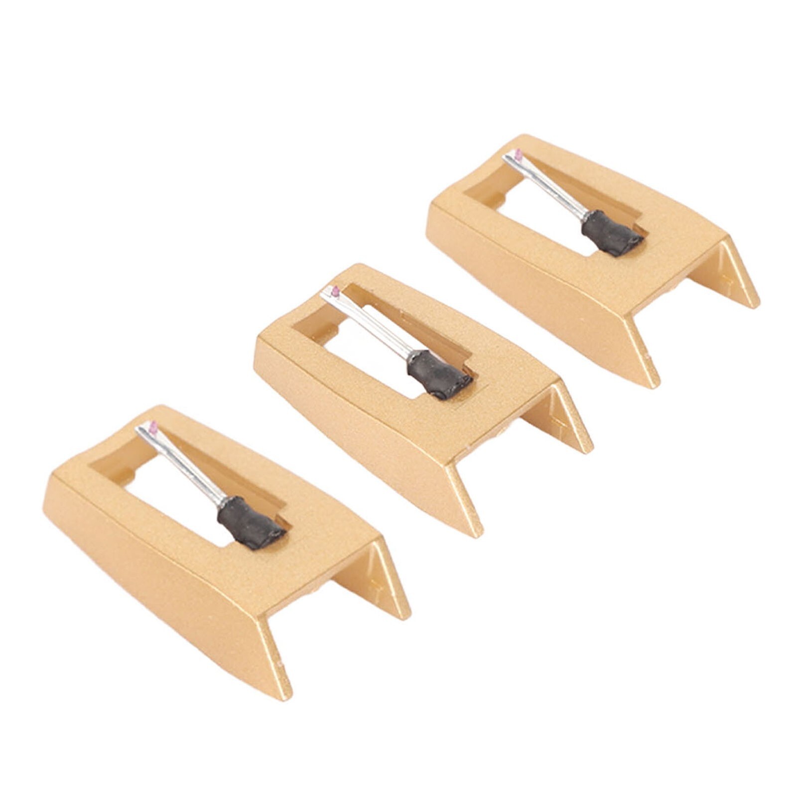 Feature: 1. WITH BRUSH: Record player needle and cleaning brush set, designed for music lovers, gold plated. The premium cleaning brush will help you care for your needles regularly and keep them working for a long time. 2. HIGH SOUND PERFORMANCE: With the tapered needle tip, premium ABS case and aluminum arm, this record stylus gives a cleaner, smoother sound when playing classical, rock, jazz or other music, enjoy more detailed music. 3. WIDE COMPATIBILITY: This record player stylus fits for Victrola, for , for ION, for Boytone, for Capehart, for Innovative Technology, for , for CROWN, for Sylvania, for , for GRACE DIGITAL, for Leetac, for Pfanstiehl, for Soundesign, for TechPlay, for , for , for York Yorx and more. 4. EASY TO REPLACE: Replacement turntable record stylus supports playback of 33 1/3, 45PRM records, easy to install. You can easily replace (remove and install) the record stylus at any time without any tools. 5. THOUGHTFUL PACKAGING: Each turntable needle comes with a sturdy plastic protective cover that guards it from any damage when not in use, and is packaged in a box for transportation. Specification: Item Type: Record Player Stylus Material: ABS, Aluminum Alloy Stylus Sizes: Length: Approx. 18mm / 0.71in Front Width: Approx. 9mm / 0.35in Rear Width: Approx. 10mm / 0.39in Front Height: Approx. 3mm / 0.12in Rear Height: Approx. 4mm / 0.16in Color: Gold Needle Pressure: 5.0g Output Voltage: 200mv-300mv (1K Hz = 3.54cm/sec) Channel Distortion: (1k Hz) ≤ 3dB Channel Separation: (1k Hz) ≥ 15 dB Frequency Response: 80-10000Hz (±7dB) Compatible: Over 90 percent of record players, turntables Package List: 3 x Record Player Stylus 1 x Brush Note: Manual measurement, please allow some errors.