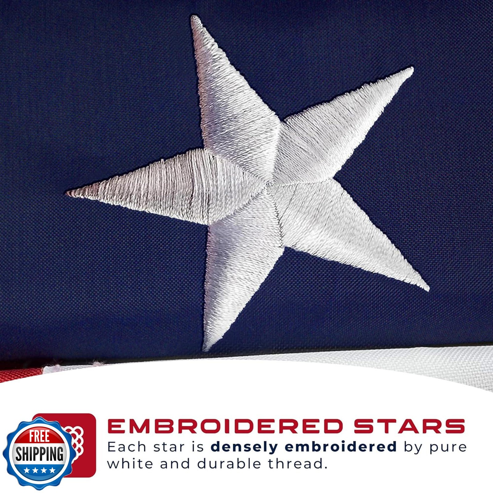 Shop72 American Flag, 3x5 American Flag Outdoor Heavy Duty, Embroidered Stars, Allegiance to USA, Bandera De Estados Unidos, For Outdoor and Indoor, Bandera Americana Features Our American flag comes with: Triple Stitched Surged seam to reduce wind drag, Sturdy Brass Grommets For easy hanging, Four row of lock stitching at wind side, Double row of stitching on the hem. An American flag built like America: Sturdy, strong and heavy duty and yet with intricate details Made From Heavyweight Nylon 210D Grade for size 3x5, 4x6 and 5x8. For bigger size we use even sturdier Nylon 240D to make 6x10 ft and 8x12 ft. For the size 10x15 ft and 12 x18 ft, we use very sturdy Nylon Oxford of 300D grade. Nylon American flag is sturdier than those made of polyesters. Each american flag 3x5 outdoor comes with highly and densely Embroidered Stars And Sewn Stripes. Our American flags for outside come with Vivid white stars, brilliantly embroidered, for a beautiful presentation. Our american flag 3x5 outdoor is made of Deluxe Heavyweight Nylon material. Ranging from 210D, 240D upto 300D grade. This DURABLE fabric ensures that our American flag flies in a light - medium wind and blocks damaging UV rays to fade color. Show your pride in red, white and blue! Our American flags for outside are excellent gifts for friends, parents or to display on your home. Flag pole is not included. Shipping Free & Fast Shipping: We offer free shipping to most of the USA with a normal delivery time of 3-7 days. However, due to the current situation, additional delivery time (up to 3 weeks) may be required for some items. Alternative Carriers: We may use alternative carriers (e.g., USPS, FedEx, UPS) to ensure your package arrives safely and on time. Due to the use of multiple carriers, we are unable to provide a tracking number automatically. Handling Time: Orders are processed and shipped within 1-2 business days of receiving cleared payment. Shipping Restrictions: Shipping to Alaska, Hawaii, Puerto Rico, Guam, and other US territories may incur shipping charges or delivery restrictions. Please contact us before ordering, or your order can be refunded/cancelled. State Restrictions: Certain items may not be shipped to California due to state regulations. Contact for Tracking Updates: If you require tracking updates or have any concerns about the delivery of your order, please feel free to contact us, and we will be happy to assist you. Return Policy 30-Day Hassle-Free Returns: If you are not completely satisfied with your purchase, you can return the item for free within 30 days of receiving it for a full refund or exchange. Easy Return Process: Contact us, and we will provide you with a prepaid return shipping label and detailed instructions. No Restocking Fee: There are no restocking fees for returns. However, the buyer is responsible for return shipping costs if the return is not due to a seller"s error. Refund Processing: Refunds will be processed within 1 business day of receiving the returned item in its original condition. Feedback Your feedback is extremely important to us. We strive to provide the best products and customer service possible. If you are satisfied with your purchase, please take a moment to leave us a positive review. If you have any concerns or issues with your order, please contact us before leaving negative feedback. We are committed to resolving any problems and ensuring your satisfaction. Contact Us If you have any questions or concerns, please feel free to reach out to our customer support team. You can contact us through the eBay messaging system. We are available Monday to Friday, 9:00 am to 5:00 pm EST, and we will do our best to respond to your inquiry within 24 hours. Thank you for supporting our small family business!