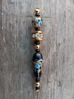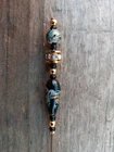 Gold & black rhinestone hat pin. Has turquise, gold & light purple design. Measures 4 3/4" long. **Item will be shipped USPS Ground in a padded envelope. NO INTERNATIONAL SHIPPING. **NO RETURNS. You are fully responsible for reading ad & asking any questions prior to purchase.**