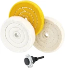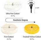 Polishing wheels diameter: 4 inch ,Height: 5/8 ",Handle diameter: 1/4 inch - 3Pcs 4in buffing wheeels grit are ultra fine,fine,medium,It can meet your diffrent uses. Fine Cotton (50Ply),Ultra Fine Cotton(30 Ply),Treated Yellow Cotton (38 Ply) The buffing wheels great for polishing metal,wood,aluminum,brass,bronze, stone, jewelry etc. Ideal for DIY, rust removal, refurbishing old items. DRILL NOT INCLUDED