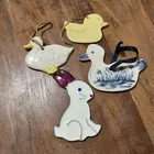 Add some whimsy to your Easter decor with these charming ceramic and porcelain ornaments. The set includes four pieces, featuring two ducks, one chick, and one bunny, all designed to bring a touch of nature to your holiday celebrations. Each ornament is expertly crafted with attention to detail, making them a great addition to any collection. The tree shape and lamb subject add a festive touch, perfect for bringing joy to your home.