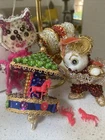 Christmas Beaded Sequin And Push Pin Ornaments Handmade Lot Of 4. For really cute ornaments I especially love the bear that is my favorite. The detail on this beautiful little ornament is incredible. They are a mixed lot sold as is they are in vintage condition. Please note the carousel the two pink horses need to be glued back on, and it will still be missing one of them back in the day they were for now we’re down to one with two that need to be reattached.