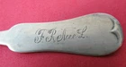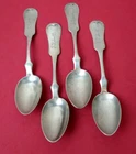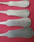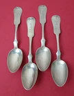 4 Antique Coin Silver teaspoons. These spoons measure 5 7/8" in length and have a tipt Fiddle handle. They are all monogrammed the same as pictured. All In good estate condition and have normal marks from use. The four spoons weigh 77 grams. <img src="http://ti2.auctiva.com/web/aswCredit.gif" border="0"><br><a href="http://www.auctiva.com/?how=scLnk2" target="_blank"><img src="http://ti2.auctiva.com/images/sc1line2.gif" border="0"></a>