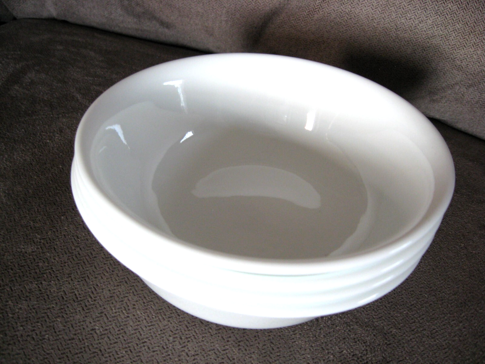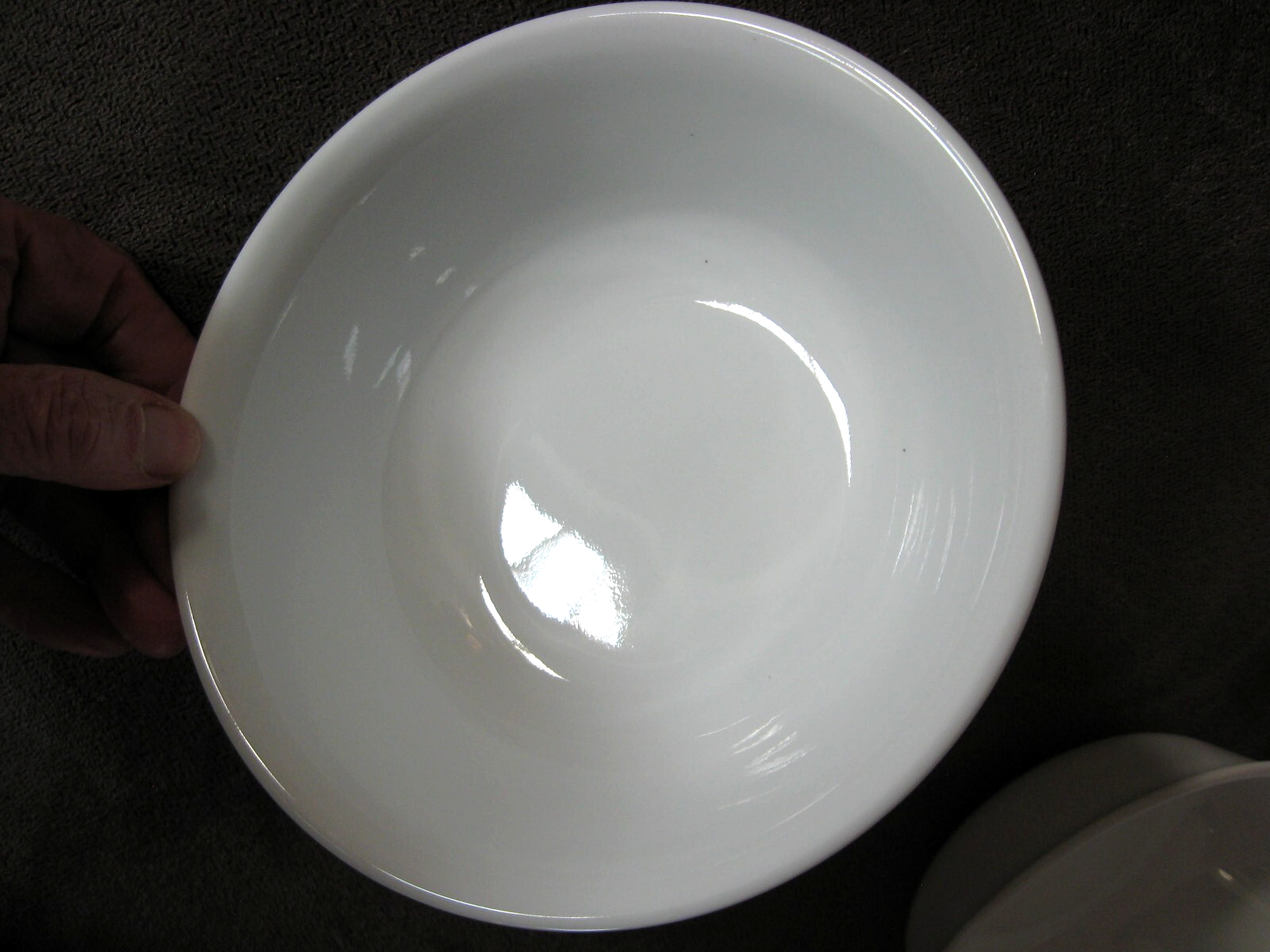 Many thanks for checking.......... FOUR soup or cereal bowls - Corning Corelle - 6 1/4" across Winter Frost White pattern. Clean and shiny - no damage. Questions - just ask