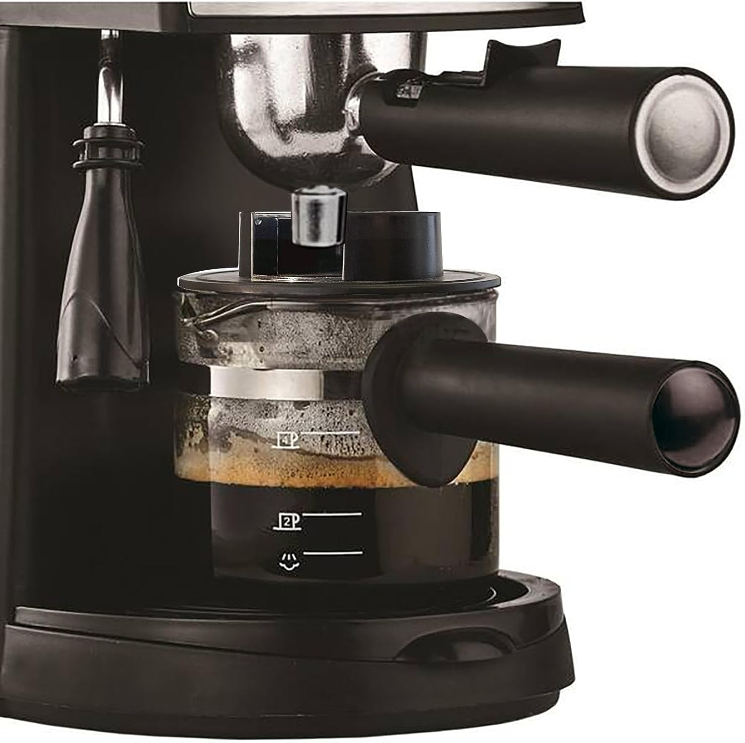 [4Cups Capacity]: This expresso shots cup capacity is 4cups. With removable lid, the carafe is compatible with most espresso machines that use a 4 cup standard size portafilter. [Safe & Strength]: The espresso machine accessories is made of high quality borosilicate glass, which is known for its strength and heat resistance. [Easy to Use & Clean]: The espresso pouring cup with handle and an angled spout, which makes it easy to pour espresso without spilling or making a mess. You can also remove the lid for use if it is too high. This glass coffee carafe is easy to clean and dishwasher safe. [Compatiblity]: This espresso coffee carafe glass is compatible for IMUSA espreeo machine, also as Hamilton Beach, Mr.Coffee, Breville, UNIVEN Espresso Maker accessories ,Black handle [Equal Replacement]: This Espresso replacement coffee pot is to replace your broken or worn 4cup espresso machine carafe, work perfect as your original one. Product Description Brew your espresso with the new espresso carafe instead of the worn ones. You can take off the lid to adapt your espresso maker. Steam the milk to have a wonderful cappuccino or latte.