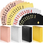 Material: These playing cards are made of sturdy plastic material, smooth surface, wrinkle-free, comfortable feel, can be used for multiple times. Exquisite Design: The playing cards is designed with foil, makes the card gloss and elegant, looks more luxurious, can bring you a comfortable playing experience. Waterproof & Washable: Made of waterproof material, feel free to take them under water to wash them, no worry for any stain, does not affect reuse. Easy to Shuffle: Each waterproof plastic card measures approx. 3.4 x 2.2 inch/ 8.7 x 5.7 cm, a proper size that fits most people's hand size, good flexibility makes them be easy to shuffle. Have Fun: You can play these cards with your friends family on Children's day, Christmas day, birthday, bar, new year party, family gathering party. It will bring you a lot of fun when playing and create a more relaxed and lively party atmosphere. Features: Easy to Shuffle: Each waterproof plastic card measures approx. 3.4 x 2.2 inch/ 8.7 x 5.7 cm, a proper size that fits most people's hand size, good flexibility makes them be easy to shuffle. Quality Material: These playing cards are made of sturdy plastic material, smooth surface, wrinkle-free, comfortable feel, can be used for multiple times. Have Fun: You can play these cards with your friends family on Children's day, Christmas day, birthday, bar, new year party, family gathering party. It will bring you a lot of fun when playing and create a more relaxed and lively party atmosphere. Specifications: Material: plastic Color: gold, silver, black, rose gold Size: 3.4 x 2.2 inch/ 8.7 x 5.7 cm Quantity: 4 pack Package includes: 4 X Plastic Poker Cards