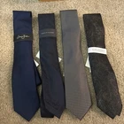 The product is a lot of four ties from various brands such as Sean John, Tommy Hilfiger, Perry Ellis, and Ryan Seacrest. These ties are designed for men and are perfect accessories for formal occasions or adding a touch of style to a professional outfit. With a variety of designs and patterns from well-known brands, this lot offers versatility and quality to enhance any man's wardrobe.