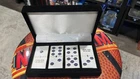 The product is a set of 4 Navy Chief CPO Challenge Coins designed in the style of dominoes, with a matching case for storage. The coins likely feature unique designs or insignias related to the Navy Chief CPO rank. This set would be a collectible item or a gift for those affiliated with or interested in the United States Navy.