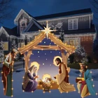 Features: The set includes a stable manger, realistic Jesus, Mary, and wise men. Each character expresses their joy at the arrival of a new life. This set also includes beautiful decorative lights, making this decoration shine beautifully at night. This oversized nativity scene outdoor is made from quality durable materials to ensure the quality and durability of the decorations. Our decorations are handmade, each piece is carefully crafted with good detail to better showcase the nativity scene. Specifications: Material: hollow board Color: multicolor Size: Nativity scenes: about 117 x 114 cm/ 3.84 ft x 3.74 ft Wise men: about 60 x 30 cm/ 1.97 ft x 0.98 ft Light strings: 5 meters and 3 meters long Package includes: 1 x Nativity scenes 2 x Wise men 3 x Light strings Notes: Manual measurement, please allow slight errors on size. The color may exist a slight difference due to different screen displays. Product Includes: Christmas nativity scene outdoor includes 1 manger scene religious signs, 2 wise men and 3 light strings; Classic design full of Christmas atmosphere, providing everything you need for a mesmerizing, illuminated display Large Sizes for Outdoor Use: with the nativity scenes measuring 117 x 114 cm/ 3.84 ft x 3.74 ft and the wise men at 60 x 30 cm/ 1.97 ft x 0.98 ft, this yard nativity scene outdoor adds significant visual appeal to your holiday decor; The length of our light string is 5 meters for 1 pcs and 3 meters for 2 pcs; The product does not include batteries; Please configure AA batteries yourself Reliable Material for Longevity: this nativity scene outdoor large lighted is made from a durable hollow board material, ensuring longevity; Nice for those seeking a stable and long lasting nativity set for Christmas outdoor decor Easy Assembly Outdoor Decor: this large outdoor nativity set for yard is designed for simply assembly, making it an easy addition to your Christmas outdoor decor; Once you set it up, it's sure to be an attention grabber for passersby Outstanding Outdoor Nativity Set: this nativity set for Christmas outdoor decor meets the needs of customers who want a durable, and visually stunning accessory; With easy assembly, impressive size, it's easy to enhance the holiday spirit
