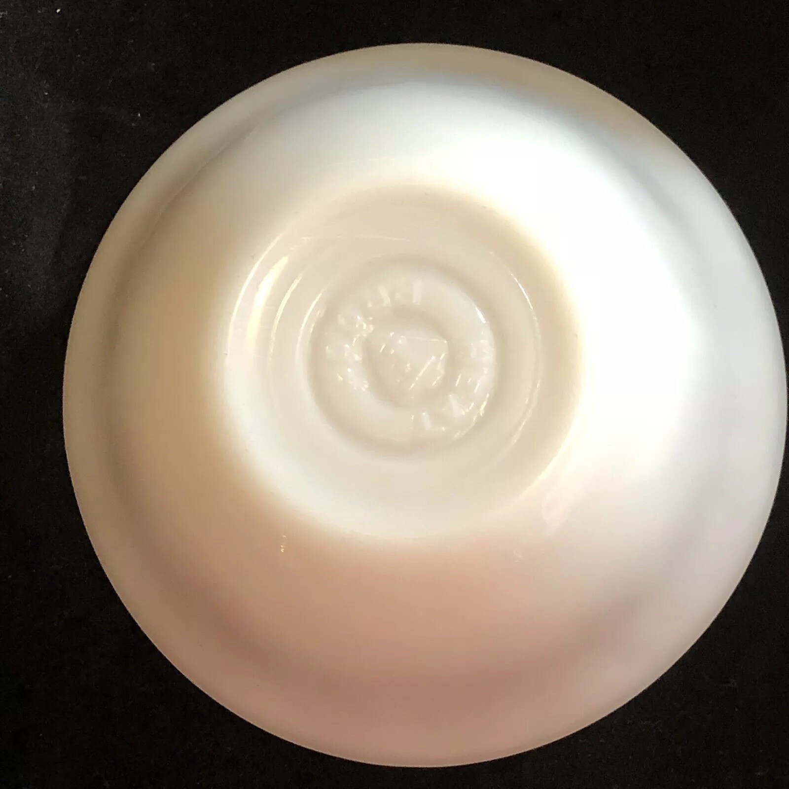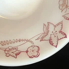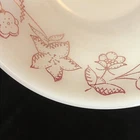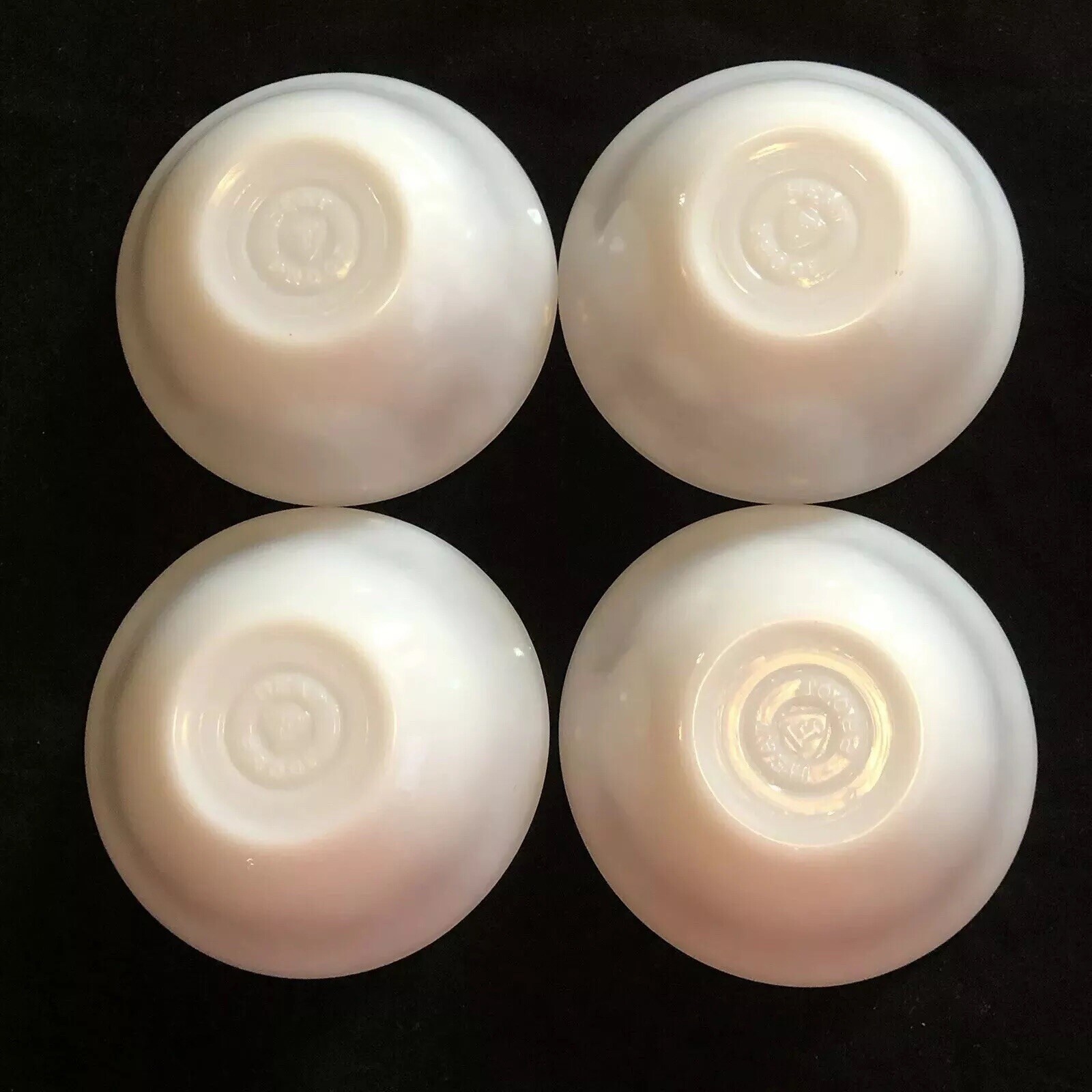 Beautiful Federal Milk Glass Berry Bowls. Burgundy wildflower pattern. Set of 4. Measures approx. 4 7/8" across and 1 1/2" tall. Marked on bottom: Heat Proof F. Please see pictures for details as this is part of my description.