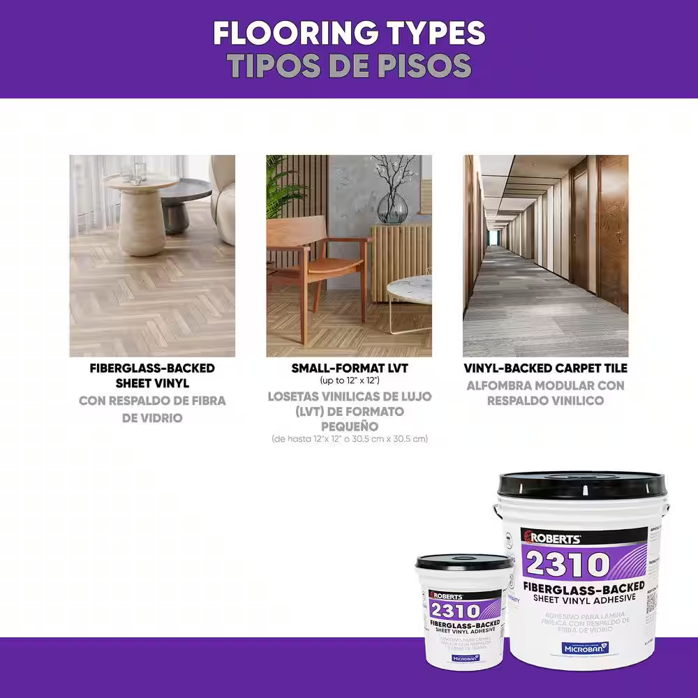 Fast Shipping On All Items 30 Days Money Guarantee Customer Support Excellent Service 100% Satisfaction Satisfaction Guaranteed 4 Gal. (16 Qt.) 24 Hour Dry Time Fiberglass-Backed Sheet Vinyl Floor Adhesive in Beige Specification Adhesive Type Vinyl Color Family Beige Commercial / Residential Commercial / Residential Dry time (hours) 24 Flooring Material Features Antimicrobial,Latex based,Solvent free,Water based Flooring Product Type Vinyl Adhesive Flooring Type Carpet,Vinyl Indoor/Outdoor Indoor Location Floor Product Weight (lb) 38 lb Returnable 90-Day Lifetime Warranty No Manufacturer Warranty Adhesive Bond: Limited Lifetime (when installed by Certified Flooring Pro) or Limited 10 Years Container Size 4 Gallon Container size (qt) 16 Maximum Coverage Area (sq ft) 960 sq ft Product Width (in) 12.5 in 12.5 inches. Weight: 38.0 lb Item Description For installation of fiberglass-backed sheet vinyl Compatible with multiple subfloors, 24-hour cure time Powered by Microban for superior mold and mildew protection ROBERTS 2310 Fiberglass-Backed Sheet Vinyl Adhesive is formulated with the desired tack and flexible working time for fiberglass-backed sheet vinyl, luxury vinyl tile and carpet tile. It is pressure sensitive and remains tacky for both permanent or releasable installations. Powered by Microban, this antimicrobial product protection helps fight the growth of stain and odor-causing bacteria that can cause product degradation. ROBERTS 2310 can be used for installation of small format luxury vinyl tile (LVT) up to 12 in. x 12 in. and vinyl-backed carpet tile. Made in the USA, this superior adhesive is non-flammable and solvent-free for a low VOC application. About us We offer the best prices around on high quality products. Our E-store includes media such as books, movies, music and games while offering electronics, toys, sporting apparel, clothing, tools, general home, garden items and more. Shipping We are always working hard to ensure your package arrives as soon as possible. Please understand that some factors like weather, high postal traffic, and the performance of shipping companies are outside of our control. We offer free shipping to the lower 48 states and ship within 2-3 business days of payment, usually sooner. We do not accept P.O. Boxes. Please provide a physical address. For shipping outside of the continental USA, we only use eBay's Global Shipping Program.The item is shipped to KY and then sent to the rest of the world. International customers are responsible for all duties and taxes. Continue to check out to calculate costs for shipping the item to your country. Messages regarding eBay's Global Shipping Program MUST be directed at eBay EXCLUSIVELY. Returns We offer a 30-Day Return Policy on items in which you are not completely satisfied with. You have the option of a full-refund or an exchange of the item. No returns are available on items shipped outside of the USA Satisfaction We try over very best to make sure every customer is completely satisfied. If there's a problem, message us! We're happy to help. Payment Options Shop With Confidence