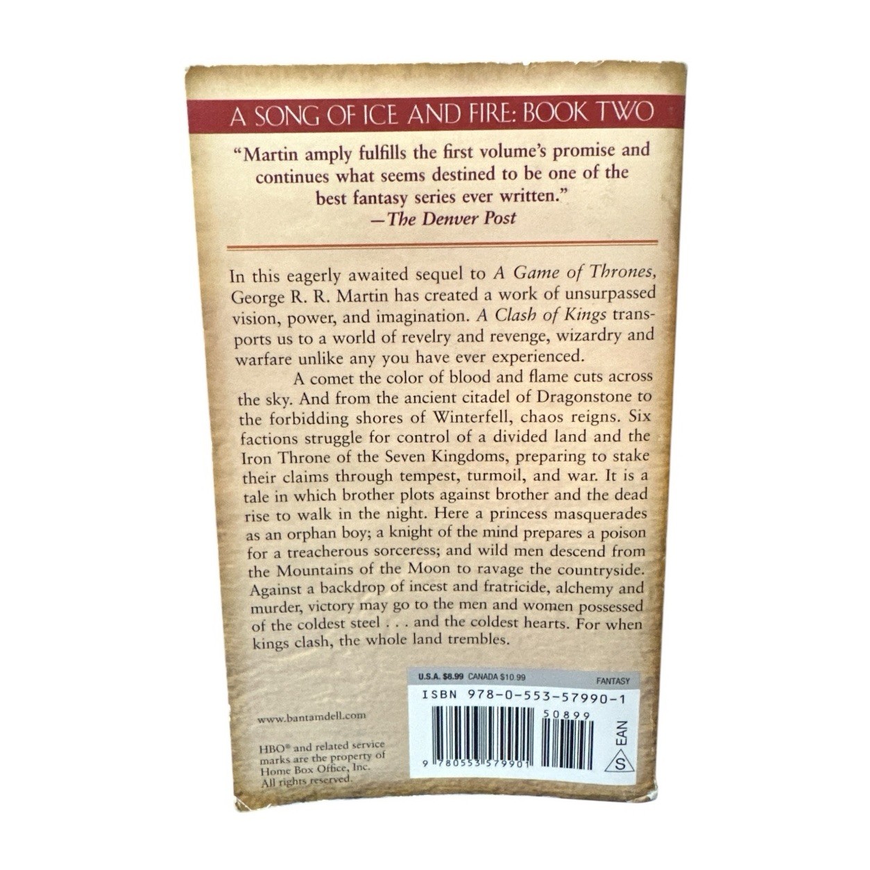 Up for sale are 4 George R R Martin A Game of Thrones Book Lot. The books are Pre-Owned and have wear from use. Clash of Kings and Storm of Swords have a couple of pages that are in the book, but separated from the binding. Books include: A Game of Thrones Clash of Kings Storm of Swords A Feast For Crows Thanks for looking! Please message me if you have any questions. ***Shipping is always next day, unless it is the weekend. Weekends are for my family! Everything bought on Friday, Saturday and Sunday will be shipped on Monday. If there are ANY problems with your purchase, please message me. I am responsible for all of my listings and I try to provide great customer service. My items are freshly cleaned if they are Pre-Owned items and laundered if it is Pre-Owned clothing.