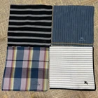 The square handkerchief is size 18 inches = 3 pcs and 19 inches = 1 pc Brand: Burberrys Material: Cotton 100% Color: Blue, Black & White Condition: Used Very good Design and condition, wonderful pattern Please click to see all picture showing before b uying or bidding!!! Shipping FREE Shipping handing WORLDWIDE. The package will be ship ped direct ly from Thailand via standard airmail, Items will ship out within 5 business days after we received a clear payment and transit time between 15 - 25 business days depends on destination. Payment Term We require payment within 5 days from the end of auction/purchase. If payment is not received within this period, your item may be re-listed and we may file unpaid item to get a reversal of the eBay fees. We strive for customer satisfaction. Should there be any unforeseen problems please contact us and we will try our best to resolve it before any feedback is exchanged. Your satisfaction is important to improve my shop for serving my value customer better and better. Appreciate if you could give your good feedback. Enjoy your buying and thank you for shopp ing