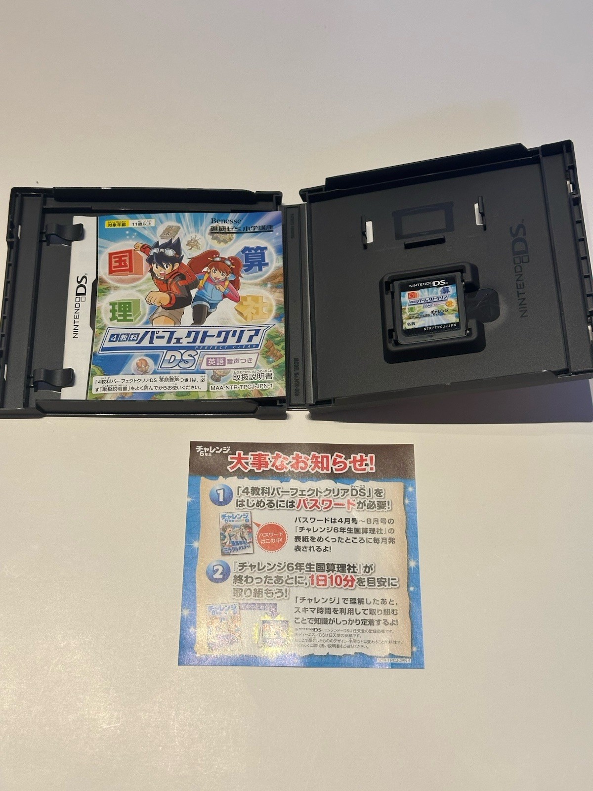 The product is a Nintendo DS game titled "4 Kyouka Perfect Clear DS: Eigo Onsei Tsuki" published by Nintendo. It is a Japanese version (NTSC-J) of the game that has been tested and is compatible with US consoles. The game comes as a cartridge only, without any additional accessories included. This product is offered by a US seller, making it convenient for gamers in the United States to enjoy the unique gameplay and challenges offered by this title.