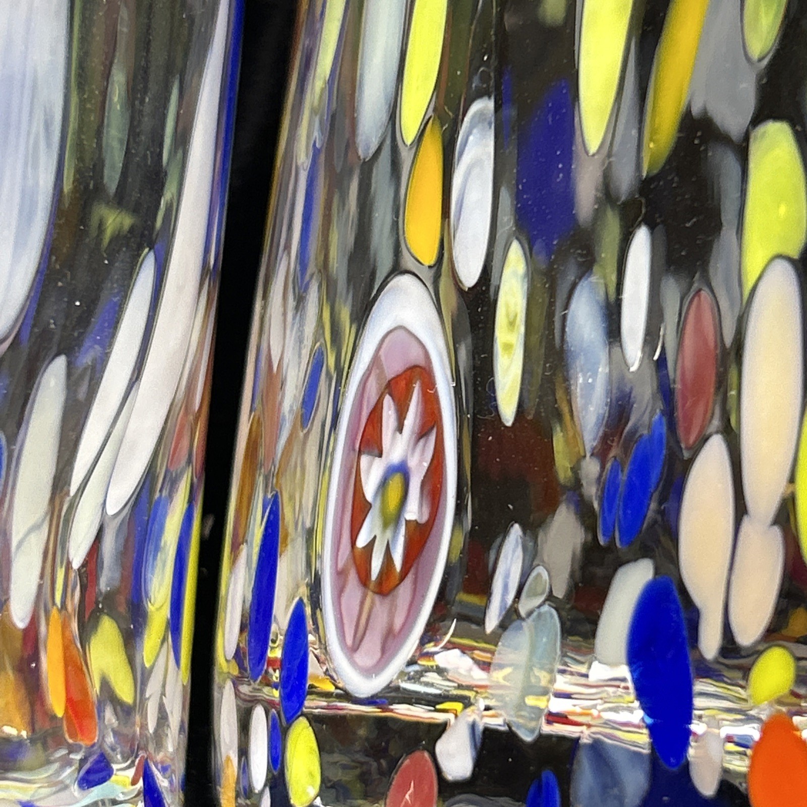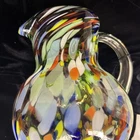 Set of 4 new Murano confetti art glass iced tea glasses. Also use for water, lemon aid, soda. Also included is a new Mexican art glass confetti pitcher for iced tea, water or lemon aid. Note: the pitcher is not Murano. The pitcher and glasses are NOT a matched brand, but they sure look great together, both being confetti style. All is new, never used and in excellent condition. See all pics for condition and description.