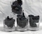 4 New Patron shot glasses Measures 2.25" tall Holds 2 oz Tiny bubbles in the glass Tequila Patron and a bee etched on front