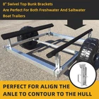Description Features: UNIVERSAL FIT: 8-inch galvanized swivel top brackets designed to fit 3"x3", 2"x3", and 1.5"x3" boat trailer crossmembers, ensuring a perfect fit for various trailer cross beams and accommodating different widths effortlessly. Corrosion-Resistant Material: Made from heavy-duty galvanized steel, our bunk brackets are engineered for durability and resilience. They resist bending and deformation, making them ideal for both freshwater and saltwater boat trailers, ensuring long-lasting performance. Adjustable Angles: The adjustable top bracket kit allows for easy alignment of your trailer's support points to your boat's hull profile. Whether your hull is angled or flat, you can achieve an optimal fit for your boat with our boat trailer bunk brackets. User-Friendly Installation: Designed with convenience in mind, our boat trailer kit adheres to industry-standard 8" heights and features multiple slotted holes for easy adjustments in height and angle, making installation and customization a breeze. Complete Tool Kit Included: Each kit comes with all necessary components for installation and replacement: 4 rectangular brackets, 4 trapezoidal brackets, 4 U-bolts, and mounting hardware, offering everything you need for a hassle-free setup of your boat trailer bunk brackets. Product Details: Unit Count: 4.0 Count Mounting Type: Surface Mount Finish: Galvanized Item Package Quantity: 1 Included Components: (12) Nut, (12) Screw, (32) Spacer, (4) U Bolt, (8)Bracket Batteries Included?: No Batteries Required?: No Color: Silver Material: Carbon Steel Finish Type: Galvanized
