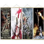 4 PCS Knights Templar Wall Art Posters Prints Vintage Solid Wood Scroll Painting