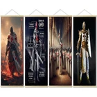 4 PCS Stunning Scroll Painting of a Templar Knight, Crusader Wall Art Poster