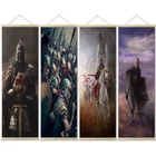 4 PCS Vintage Armor Warrior Artwork Scroll Painting Templar Knight Art Poster