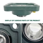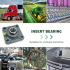 The UCF205-16 pillow block mounted bearing with a 3/4" inside diameter, four bolt holes, and a set screw lock is designed for mounting onto bearing surfaces parallel to the shaft axis, such as conveyor belts. This ready-to-mount unit has a cast iron housing, chrome steel bearings, and is designed for efficient operation at a wide range of speeds. Overall Height51.2mm Overall Length130mm Overall Width130mm SeriesUCF StandardsISO, AFBMA Locking TypeSet Screw Bolt Size1/2" Bore Dia.1-1/2" Static Load Capacity4069 lb. Dynamic Load Capacity6631 lb. Bearing Insert TypeBall Bearing LubricationShell Alvania RL2 or NLGI #2 Equivalent High Premium Quality 100% Satisfaction Guarantee *Colors may vary based on availabilityThe bearing is secured to the shaft with set screws to prevent slippage and the housing requires four 3/8” bolts (sold separately). This mounted bearing is used in industrial manufacturing, food and beverage manufacturing, and in the textile industry. Mounted bearings combine a bearing mounted inside a housing unit. The bearing housing replaces the need for a casting or weldment to position the bearing securely for reliable operation, and its design determines the type of insert bearing. Insert bearings use rolling elements (ball, cylindrical, spherical, barrel, needle, spindled, or tapered) to maintain the separation between moving parts to reduce rotational friction, and to support radial and axial loads. Available in a variety of materials and mounting configurations, mounted bearings can be one- or two-piece, they can have an extended inner ring and locking device, and they can have seals and end caps that retain lubrication and protect the working parts of the bearing from environmental debris. Mounted bearings support shafts in a variety of mounting configurations (flange block, hanger, pillow block, and take-up block), and are used in a range of applications from ligh ISO 9001:2008 CERTIFICATE Chrome Steel (AISI 52100) Ball Bearing for higher resistance and durability Self Aligning Feature Our high-quality bearing is made to reduce your replacement frequency and maintenance cost 1" inside diameter fits conventional cylindrical shafts