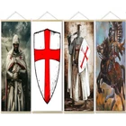 4 PIEZAS Póster Retro Cruzado Guerrero Colgante de Pared Pintura Caballeros Templarios Pergamino
