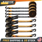 KODIAK STRAPS 4 Pack Ratchet Tie Down Straps 10000lbs 2"x27' Heavy Duty with Wired J Hooks - Cargo Truck The kit contains all the necessary 2 inch ratchet straps for the trailer to secure cargo for a safer experience. Whether you are Moving Appliances, Lawn Equipment, Motorcycle in a Truck, these 2 ratchet straps heavy duty are suitable for all kinds of jobs. Tie-down ratcheting straps are made from 100% polyester while all metal parts have been powder coated to make them durable and weather-resistant. Package Includes: 4 x 2β x 27β Heavy Duty Ratchet Straps With Flat Hooks, each one includes 2 protective sleeves. KODIAK STRAPS 4 Pack Ratchet Tie Down Straps 10000lbs 2"x27' Heavy Duty with Wired J Hooks - Cargo Truck Safely tie down straps ratchet for transport. The kit contains all the necessary 2 inch ratchet straps for the trailer to secure cargo for a safer experience. Whether you are Moving Appliances, Lawn Equipment, Motorcycle in a Truck, these 2 ratchet straps heavy duty are suitable for all kinds of jobs. The set contains high-quality components for maximum performance. Tie-down ratcheting straps are made from 100% polyester while all metal parts have been powder coated to make them durable and weather-resistant. The truck tie-down Straps also feature an industry-leading unique stitching pattern that further enhances its strength. This allows the car strap tie-down to have a working load limit of 3,333 lbs and maximum breaking strength of 10,000 lbs. The ratchet straps heavy-duty 2-inch and is also resistant to cuts and fraying with hard plastic guards that are integrated into the edges. Additionally, We use a double layer sewed into the hook loop. It makes the heavy-duty ratchet straps 200% more tore-resistant. Package Includes: 4 x 2β x 27β Heavy Duty Ratchet Straps With Wired J Hooks, each one includes 2 protective sleeves. View KODIAK Stroe Shipping About Us Return & Replacement Warranty Contact us Shipping We only ship to the lower 48 states, no APO/FPO addresses or PO Boxes are allowed. If you have not received your package, please contact us first. FREE SHIPPING: We offer free shipping on all orders. 1 BUSINESS DAYS SHIPPING OUT DELIVERY DAYS: 1-7 BUSINESS DAYS WAREHOUSE in CA & NJ & TX: Select the nearest and fastest warehouse for shipping. About Us Welcome to our store. Kodiak Straps committed to delivering superior cargo control products. We manufacture and sell professional and quality trailer, truck, ATV, UTV, motorcycle tie downs, as well as professional and quality slings. We always keep improving and innovating our product line for a better customer experience. Your feedback are significant to us! We are a new established brand [2018]. We are the source factory manufacturingCargo Control Products since [1998]. We are a group of Millennial professionals whodevoted to delivering our valuethrough our products. π± CLICK HERE TO VISIT KODIAK STRAPS STORE Return & Replacement Return & replacement accepted. Items must be returned within 30 days from the date you purchased them. The buyer will pay for return shipping. Any product you return must be in the same condition you receive it and in the original packaging. If you need to return or have a replacement, please contact us first. Warranty Limited Lifetime warranty. If you have a problem with your item, please contact us and we will provide you with a satisfactory warranty program. Please check the item carefully after receiving it. If it's your own fault, any damage will not be covered. Contact us If you have any queries, please contact us via eBay. We will respond within 12-24 hours. π¬ CLICK HERE TO CONTACT KODIAK STRAPS