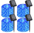 solar fairy lights 8 Impressive Lighting Modes Solar Christmas Lights: There are 8 different settings on the back of the solar panel to creates a dreamy feeling and your garden looks like a enchant fairy land at night. Blue solar christmas lights are an amazing addition to your yard, create a pleasant mood for events, parties or weddings! New Update Solar Powered Fairy Lights: Equipped with upgraded solar panel and built-in rechargeable battery, blue solar fairy lights are with up to 20.5% of energy conversion rate, which keeps christmas string lights for 10 to 12 hours after 6 hours direct sunlight charge. Outdoor solar fairy lights automatically turn on at dusk and off at dawn. Brilliant Outdoor Christmas Decor: 100 LED starry-style solar string lights with blue light accent your space with a unique, inviting glow. 33ft length is perfect to put around a garden or porch railing.Blue solar string lights the finishing touch for a back yard bbq, party, wreath, fence, patio, pools, bush, Christmas, indoor, outdoor. In the dark, the wire fades to invisible, leaving only the fairy lights, create a classy and romantic atmosphere. Flexibility & Waterproof Blue Solar Lights: You can shape flexible silver wire into a heart, wrap around tree trunks or gazebos, making twinkling bonsai/plants arrangement, added a touch of whimsy to garden. Be your designer and light up your home decoration. Both the silver wire and the solar panel of the solar copper lights are IP44 Waterproof, they are still shining bright in heavy rain and snow. What You Get: 4*100 LED blue solar fairy lights, 4*stake, 4*stand, quick and friendly customer service.Give your surrounding a whole new look with our solar lights,a hedge with several sparkling blue twinkle lights will surely attract all the eyes of passers-by,and your garden will stand out.
