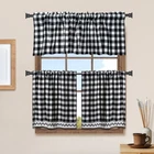 Buffalo Check Tier Pair PERFECT SIZE WITH LARGE ROD POCKET: The package includes 2 pair buffalo check tier. Measures: 28"W x 24"L, fits standard windows 24” – 48”. With 3.2 inch rod pocket which fits up to 1.6 inch diameter basic or decorative curtain rods. UNIQUE LACE TRIM DESIGN: The 2 pair buffalo check tier features a charming allover check pattern panel enhanced with a beautiful macramé border lace trim VANTAGE AND BUFFALO CHECK DESIGN: buffalo check design works well with many decorating styles like French country style, modern farmhouse style etc., Match the kitchen room but also perfect for living room, dining room or nursery. Provides an easy way to add character to your windows or rooms HIGH QUALITY AND MACHINE WASHABLE: It is in good quality, soft, durable and bright color. The color will not fade after long-time use. And machine washable with cold water on gentle cycle. Ironing is also acceptable EASY TO USE: The buffalo check tier are very easy to install and maintain, just hang up, and you can enjoy your decorative windows.
