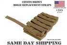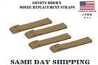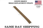 4 Pack Coyote Brown 6" Tactical MOLLE Replacement Straps Police / Military MOLLE Webbing Straps With Reliable Snap Closures For Mounting Essential MOLLE Attachments No Stitching Required, Weave The Replacement Straps Through Your MOLLE Panel And Snap Them Closed Pack Of Four MOLLE Straps Measure 6” x 1" ***Pouch In Photo Is NOT Included***