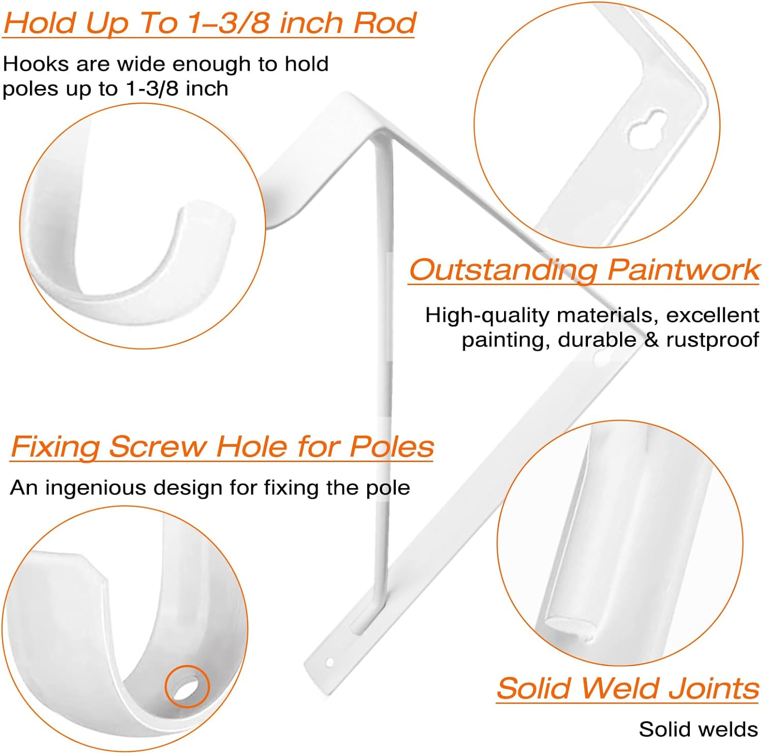 Store New Arrivals Add to Favorite View Feedback Contact 4 Pack Heavy Duty Closet Shelf & Rod Brackets, Wall Mounted Closet Shelf Description Item model number SRB-002-WH Unit Count 4.0 Count Batteries Required? No Finish Painted Mounting Type Wall Mount Part Number SRB-002-WH Color White Product Dimensions 11 x 1 x 10.2 inches Material Alloy Steel Item Depth 11 inches Item dimensions L x W x H 11 x 1 x 10.2 inches Item Weight 4.05 pounds Manufacturer KOVOSCH Size 4 Pack-White Finish Type Painted Brand KOVOSCH Included Components Anchors x 8 Screws x 16 Heavy Duty High-Quality Steel - KOVOSCH heavy duty shelf bracket are made from high quality steel with a fine painted surface, strong and long-lasting use. Classic L-Shaped Brackets - Our closet rod bracket is L-shaped with extra support bars. It helps to create more storage or display room in tight space. The neat style is suitable for all kinds of home decor. Size of Triangle Design Bracket - Closet Rod Bracket Size: L11 in x H10.2 in x W1 in with a 2.4 in hook to hang into closet rods up to 1-1/4 in. construction provides excellent weight capacity for the brackets, which can hold up to 300 pounds per pair. Easy Installation - Simply "hang" the bracket by screwing the top screw halfway on. Then lock the underside of the bracket in place with the screws. Package includes all mounting hardware for easy installation and overall installation will not take more than 15 minutes. Buy with Confidence - Choose KOVOSCH to dress up your home. If there is any quality problem, please feel free to contact us. Product description 1 Up To 1-3/8“ Rod 2 Outstanding Paint 3 Solid Weld Joints 4 Fixing Screw Hole ABOUT US We offer the best prices around on high quality products. Our E-store includes media such as books, movies, music and games while offering electronics, toys, sporting apparel, clothing, tools, general home, garden items and more. SHIPPING We are always working hard to ensure your package arrives as soon as possible. Please understand that some factors like weather, high postal traffic, and the performance of shipping companies are outside of our control. We offer free shipping to the lower 48 states and ship within 2 business days of payment, usually sooner. We do not accept P.O. Boxes. Please provide a physical address. RETURNS We offer a 30-Day Return Policy on items which you are not completely satisfied with. You have the option for a full-refund or an exchange of the item. No returns are available on items shipped outside of the USA. PAYMENT We accept PayPal. CONTACT US This page content is yet to come Please ad us to your favorite seller and visit again later Thank You CUSTOMER SATISFACTION We try our very best to make sure every customer is completely satisfied. If there's a problem, message us! We're happy to help.