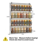 Let’s fully enjoy the fun of cooking, the reasonable design allows for this 4-tier wall mounted spice rack shelf organize the seasoning in one convenient place and saving more space essential for your kitchen, pantry or cabinets! Features: 1.Perfect for spices, medicine bottles, cotton pads, facial cleansers, toners, face creams, body lotions, scrub creams, essential oils, nail polishes and other small jars in your home. 2.The 4-tier spice rack is designed to eliminate the mess in your kitchen, pantry, lavatory,living room and other storage space. 3.Easy to hang it on the wall or door with the hardware. 4.Clear view allows you to see all of your items at a glance and easy to reach. 5.Strong and sturdy thicken iron wire construction. 6.Can be used alone or stacked. 7.Can hold 36 6oz spice jars or 32 8oz spice jars. 8.Spice jars are not included. Specification: Single layer size: 17"L x3"W x5.6 "H 4 layers size: 17"L x3"W x 23.3"H Color:Black Package Includes: 4 X Single foldable spice rack 1 X Installation manual 8 X Short screw 6 X Big head screw 8 X Long screw 8 X Anchor 【Multi Function】Our spice rack can answer all your needs!In the kitchen,it can storage your desired spices, ingredients, small jars, tea bags, etc;In the bathroom,you can use it to storage lavatory essentials,cosmetics and towels;In the home,you can use it to storage craft supplies, medicine bottles and other gadgets;Also can storage much more items if want...This spice rack organizer always know your request and easily to free up more space for you,no more clutter in your home and kitchen 【Wall Mount】This spice rack organizer is the 4 layered design, used single rack alone or stacked according to your own need.You can put it in the pantry or hang it on the wall or door, maximize your storage space. 【Large Capacity】This spice rack can hold 36 6oz spice jars,4 rows x 9;or can hold 32 8oz spice jars,4 rows x 8.Quickly clear view and neatly arrange items in one place,save more time and hassle of searching through cabinets for desired ingredients and products 【Strong and Durable Construction】The 4-tier spice rack made of by thicken iron wire,to make it more stability and durability,and mounting hardware included.Single layer size: 16.9"L x2.55"W x5.7 "H; 4 layers size: 16.9"L x2.55"W x 23.22"H. 【Strong and Durable Construction】The 4-tier spice rack made of by thicken iron wire,to make it more stability and durability,and mounting hardware included.Single layer size: 16.9"L x2.55"W x5.7 "H; 4 layers size: 16.9"L x2.55"W x 23.22"H
