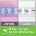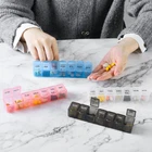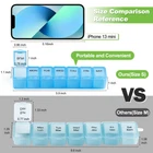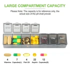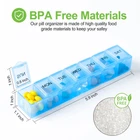 Description:Helps to remember your medication dailyNo need to bring multiple pill bottlesProtects and manages your pills and supplementsHelp you carry essential vitamins and other nutrients for your travelsThey can also store decorations, earrings, rings, hair clips, hooks, screws and other small itemsSpecification:Name: Pills OrganizerMaterial: Food-grade Cereal shell fiberTotal size: 5.9 x 1.1 x 1 inchCompartment size: 1.1 x 1 x 0.9inchPackage included:4 x Pill organizer (Pink + Blue + White + Black) 【 Weekly & Monthly Pill Box 】 One case for a week (7 days), 4 different colors (Pink, Blue, White, Black) fish oil pill cases for a month (28 days) 【 Small Size & High Capacity 】 7-day pill organizers are quite nice for easy daily dispensing and enough space for filling and sorting all your pills for the entire week. Small and portable size, perfect for your travel or on-the-go. (The size of each compartment measures approx. 1.1" x0.86" x1") 【 Non Toxic Material 】 This small pill organizer is made of food-grade PP plastic, you don't need to worry when storing multiple pill regimes inside. With the transparent plastic lid, it's quite easy to distinguish the pills in each dose without opening the lids 【 Not Easy To Fall Off Printing 】 To avoid screen-printing fonts and icons falling off from the surface of the pill box, we use high-end screen printing ink, you don't worry the "Printing word" will be missing and taking the wrong pill by mistake 【 Easy To Use & Protection Design 】 Our pill container lids close tightly all the time, will never pop-open and dump pills out in your purse. Don't worry about your pets and children coming into contact with the pills because you accidentally dumped the medicine organizer accidentally or unintentionally