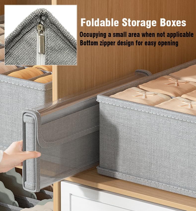 đă4 Pack with 80 CellsăYou will receive 4 pack clear clothes drawer dividers with lids, each mesures 12.6''*12.6''*3.3''. 2 packs 24 cells storage box for socks, pantyhose, underwear, and other accessories organizer, 2 pack 16 cells storage box for neck ties, scarves and baby clothes organize. đăSuperior MaterialăThe folding underwear organizer with lids are made of durable non-woven fabric and delicate stitchings, odorless, durable, washable and breathable. With the clear lid, you will see through the wardrobe drawer organizer with lid without open it and keep the items inside clean at the same time. Will last for a long time, keep your room neat and tidy. đăCollapsible DesignăThe collapsible sock underwear organizer is lightweight and you could assemble or fold up it quickly with the zip on bottom. Takes up little space when the fabric organizer with lid is not in use. đăWidly UsedăStackble clothes storage bins make it possible for keeping your items clean and saving space, can apply to wardrobe, drawers, shelf, cabinet. Great organizor solution for bedroom organization and dorm storage. đăRisk-Free Purchaseă30 days no reason 100% . If there are any problem with 80 cells sock underwear organizer, please feel free to us and we will help you out in 24 hours.